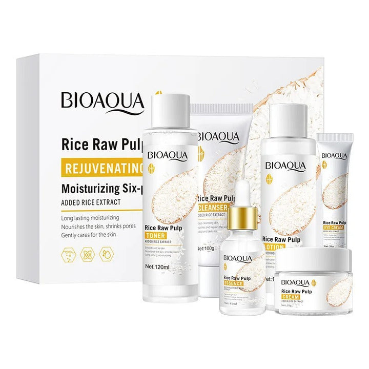 6pcs/set BIOAQUA Rice Raw Pulp Skin Care Sets Face Cream
